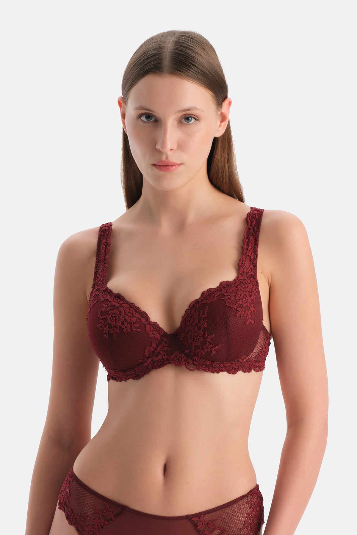 Destekli sütyende görünüm ve konforu belirleyen unsurlar bir arada çalışır. Kalıplı kup, göğsün şeklini sabit tutar ve gömlek altında pürüzsüz bir yüzey sağlar. Çıkarılabilir pedler örtücülüğü artırır, asimetrileri dengelemeye yardımcı olur. Geniş ve esnek alt bant göğsü yerinde tutar, ağırlığı göğüs kafesine yayar. Yan destek panelleri ve U form arka kısım taşmayı azaltır ve silueti toparlar. Ayarlanabilir, yeterli genişlikte askılar yükü omuza eşit dağıtır, ancak asıl desteğin banttan geldiği unutulmamalıdır. Balenli tasarımlar şekillendirmeyi güçlendirir, balensiz modellerde ise çift kat kumaş ve güçlendirilmiş tül benzer stabiliteyi daha yumuşak hisle sunar.