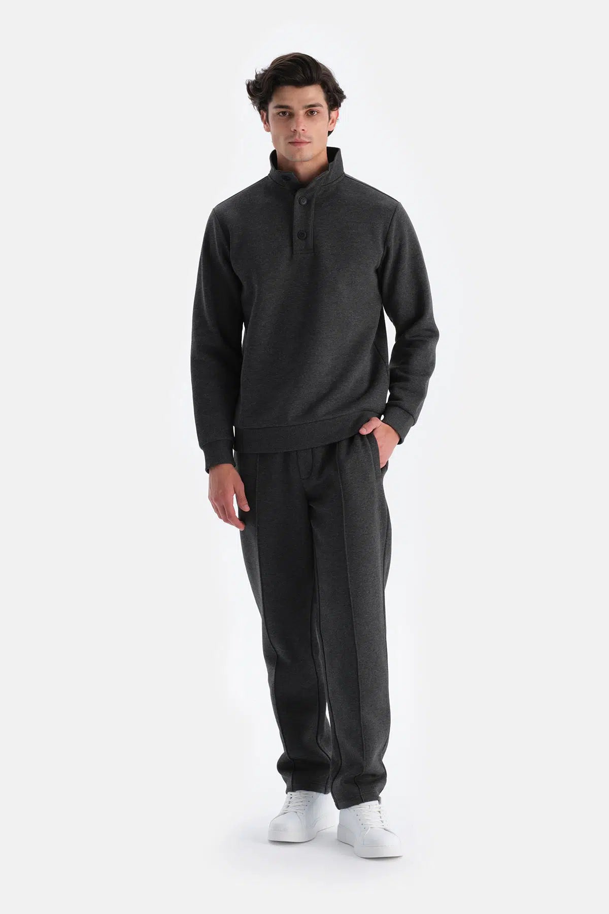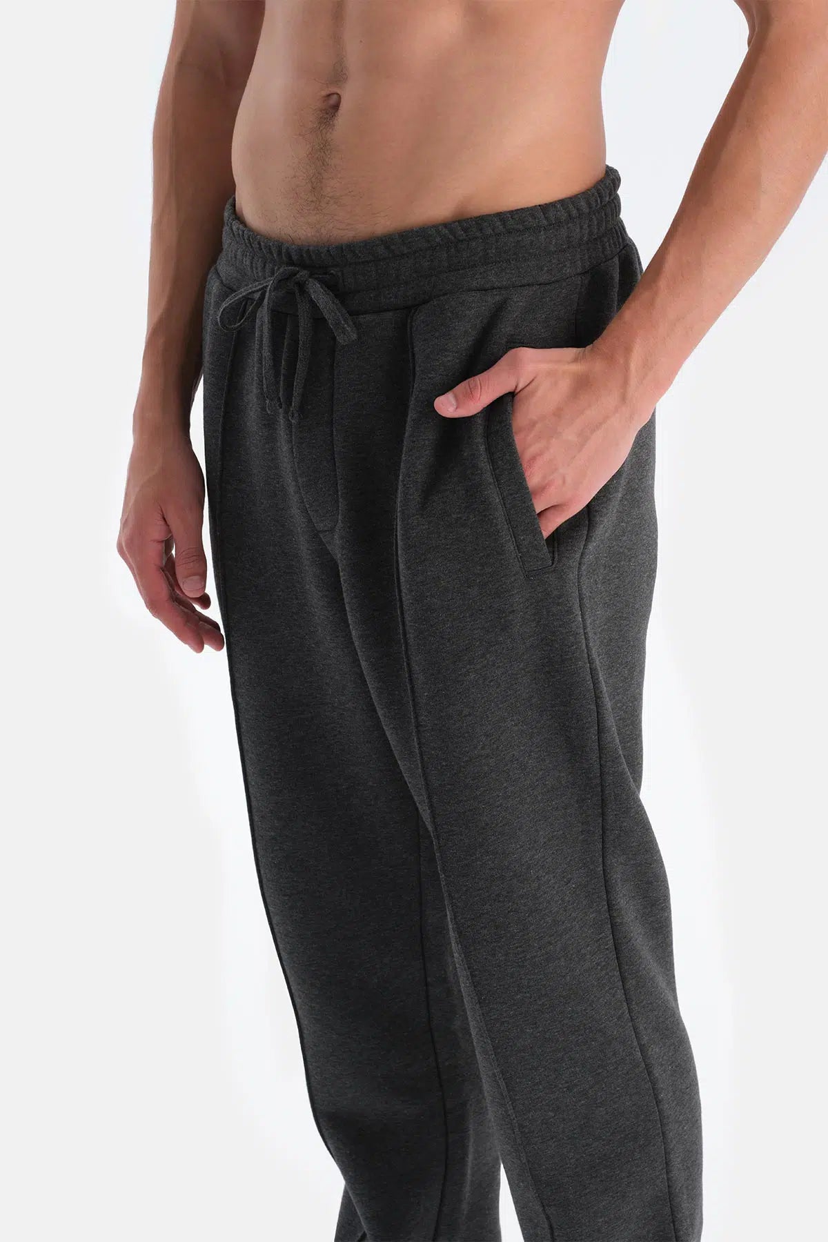 Antrasit Melanj Erkek Nervür Detaylı Içi Şardonlu Eşofman Altı