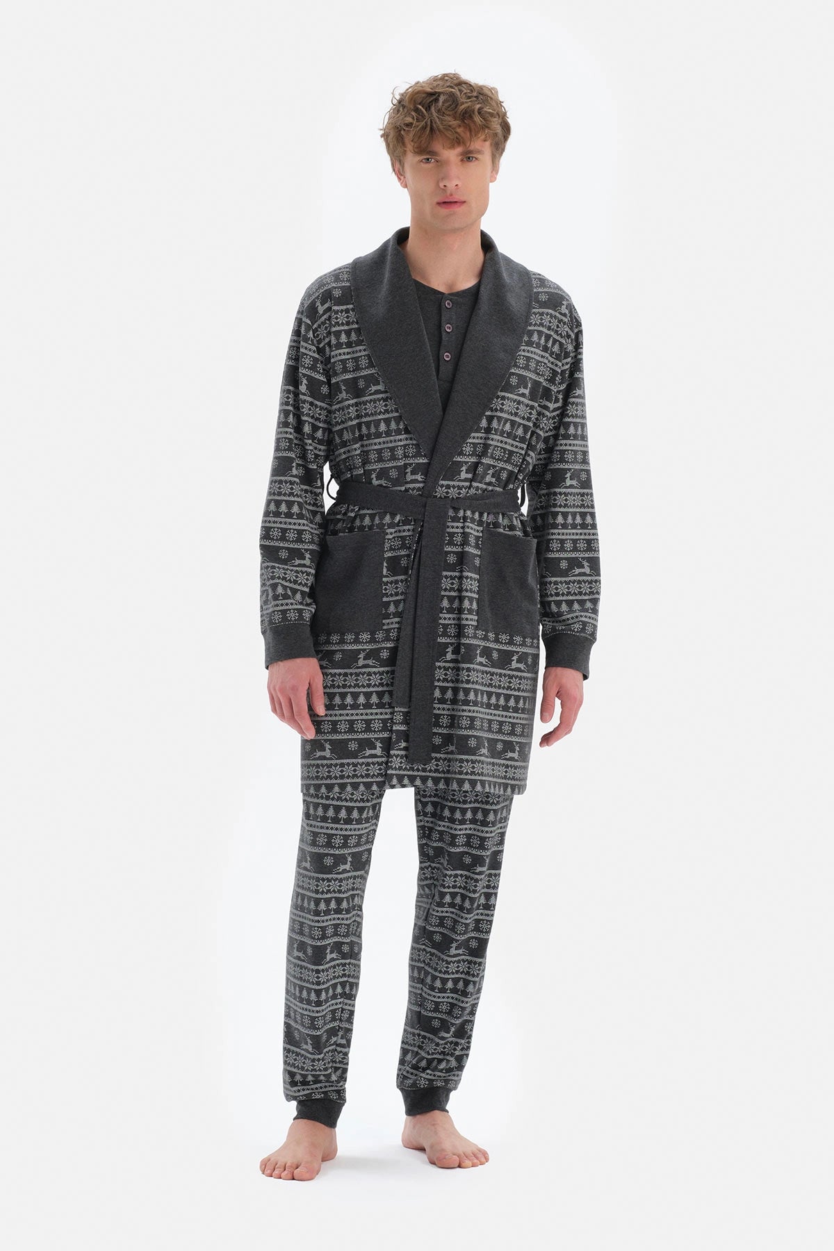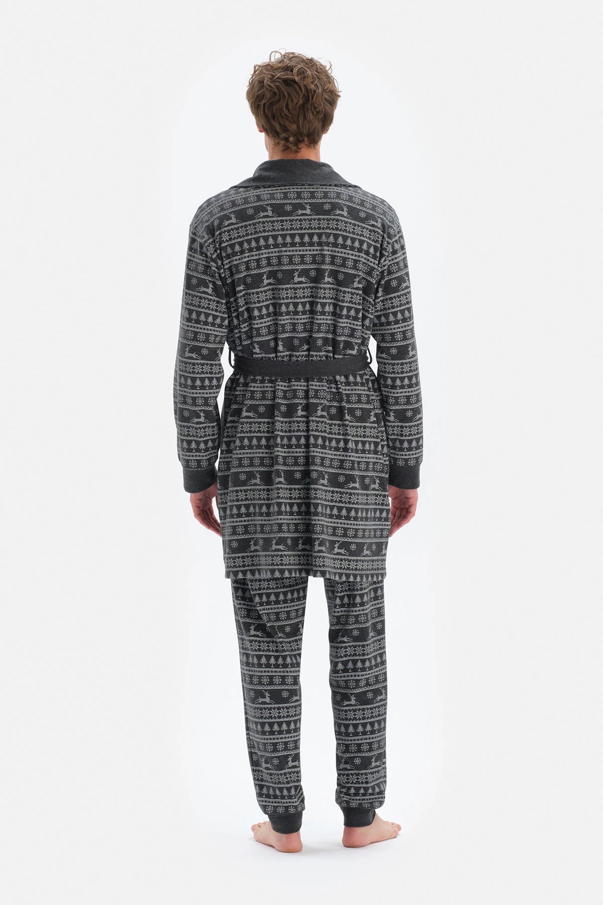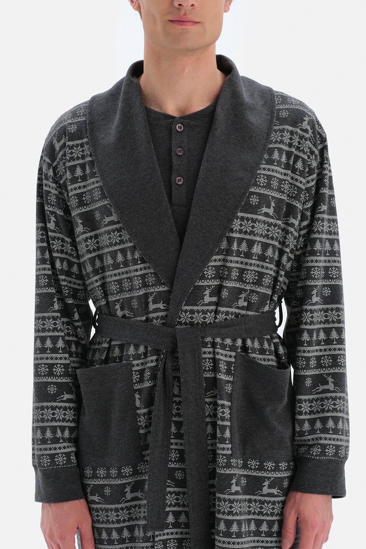 Antrasit Şal Yaka Metraj Baskılı Sabahlık