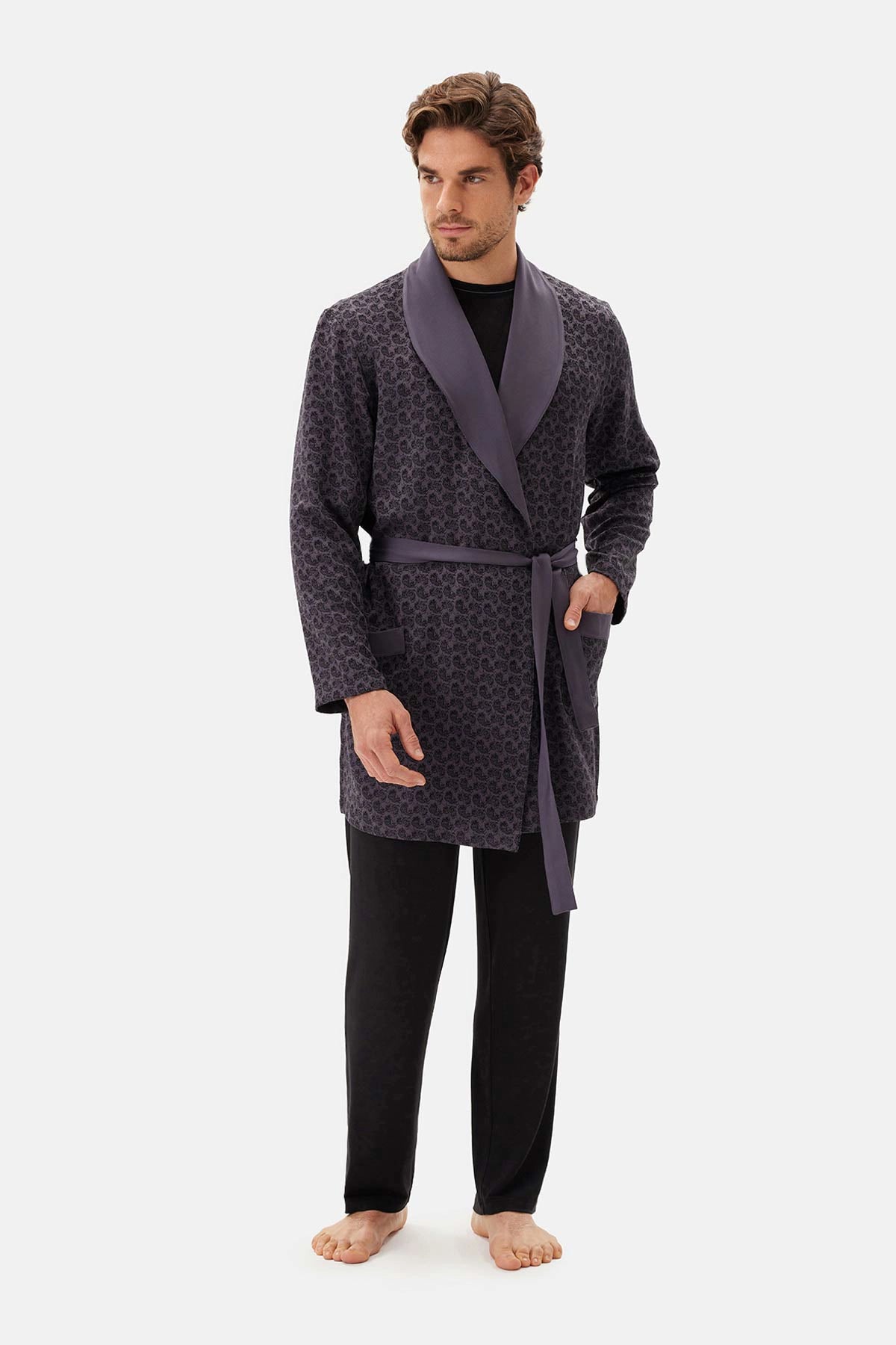 Füme Şal Yaka Jakarlı Groom Sabahlık