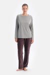 Gri Melanj Kadın Bisiklet Yaka Pijama Üstü