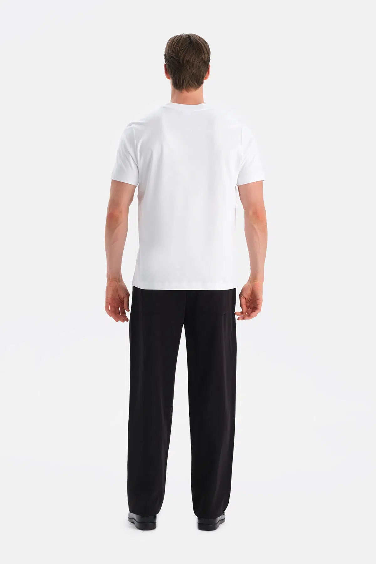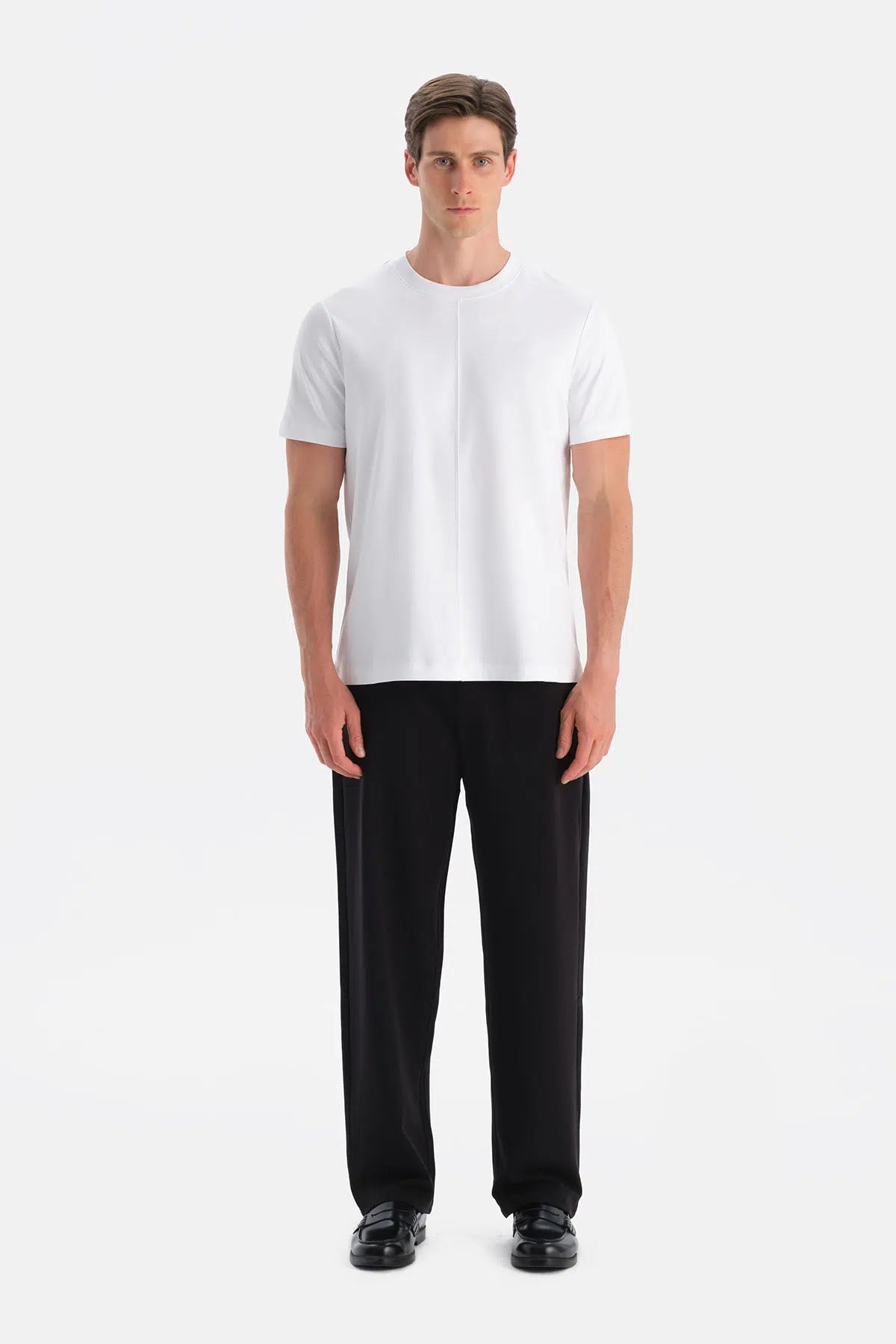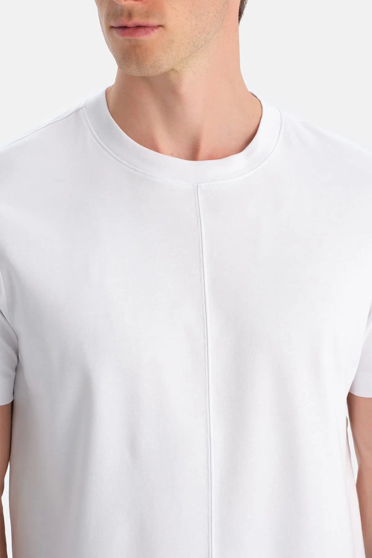 Kırık Beyaz Bis Yaka Ön Dikiş Detaylı Regular Tişört