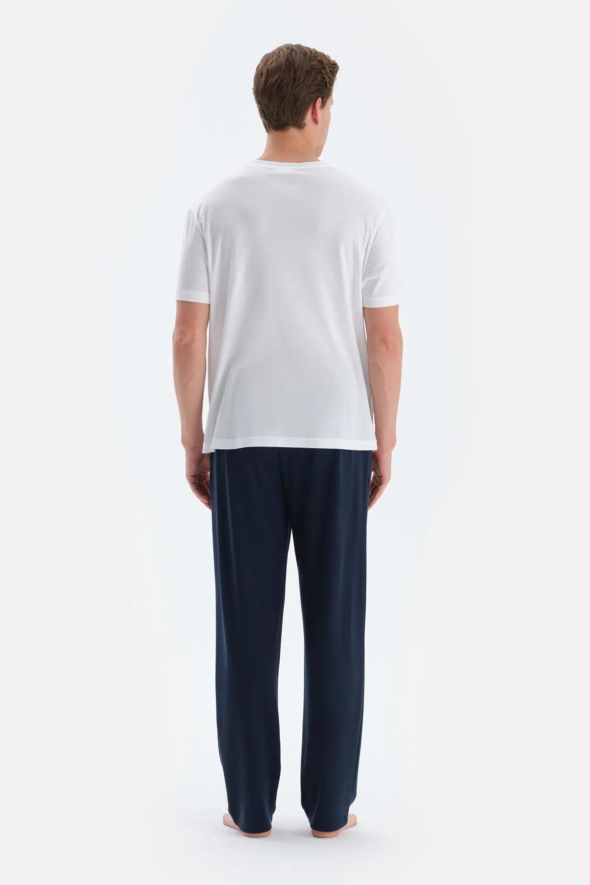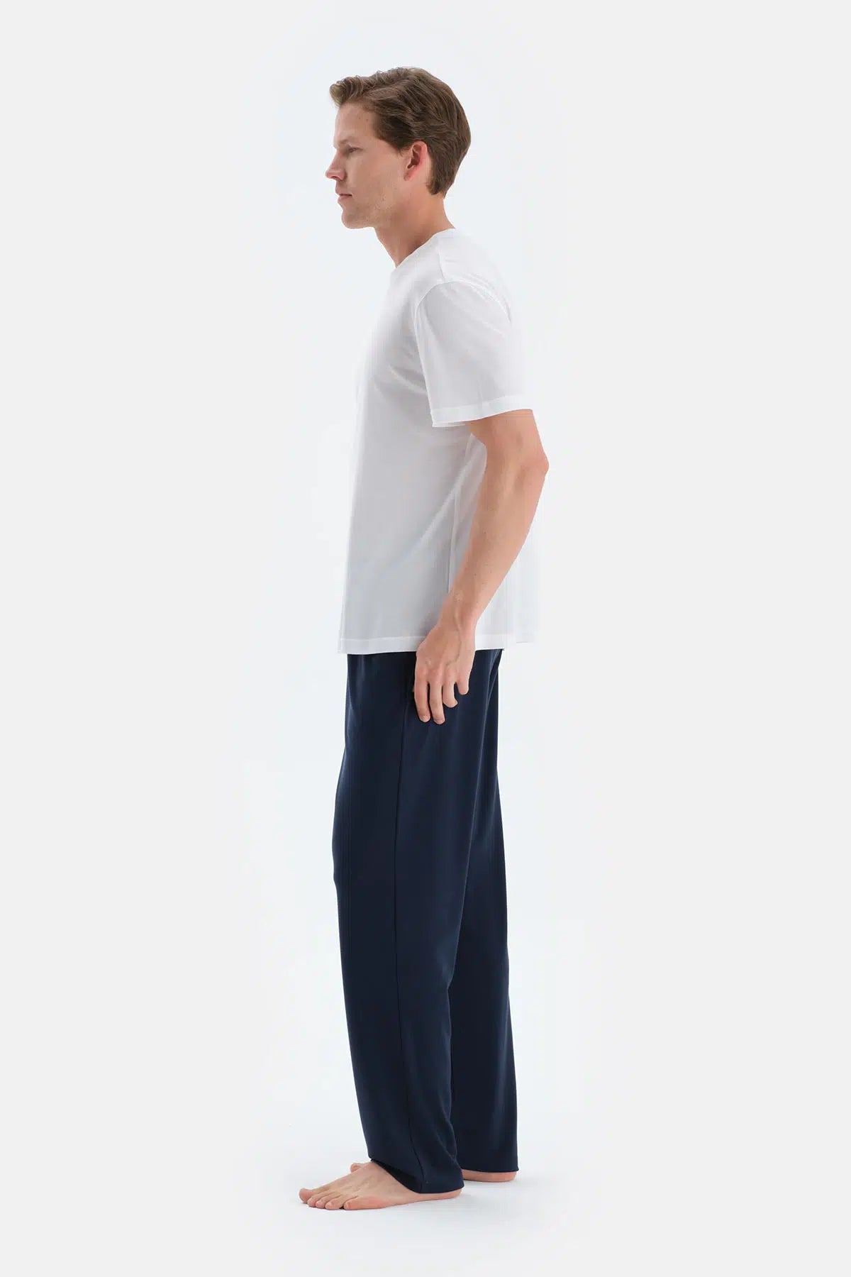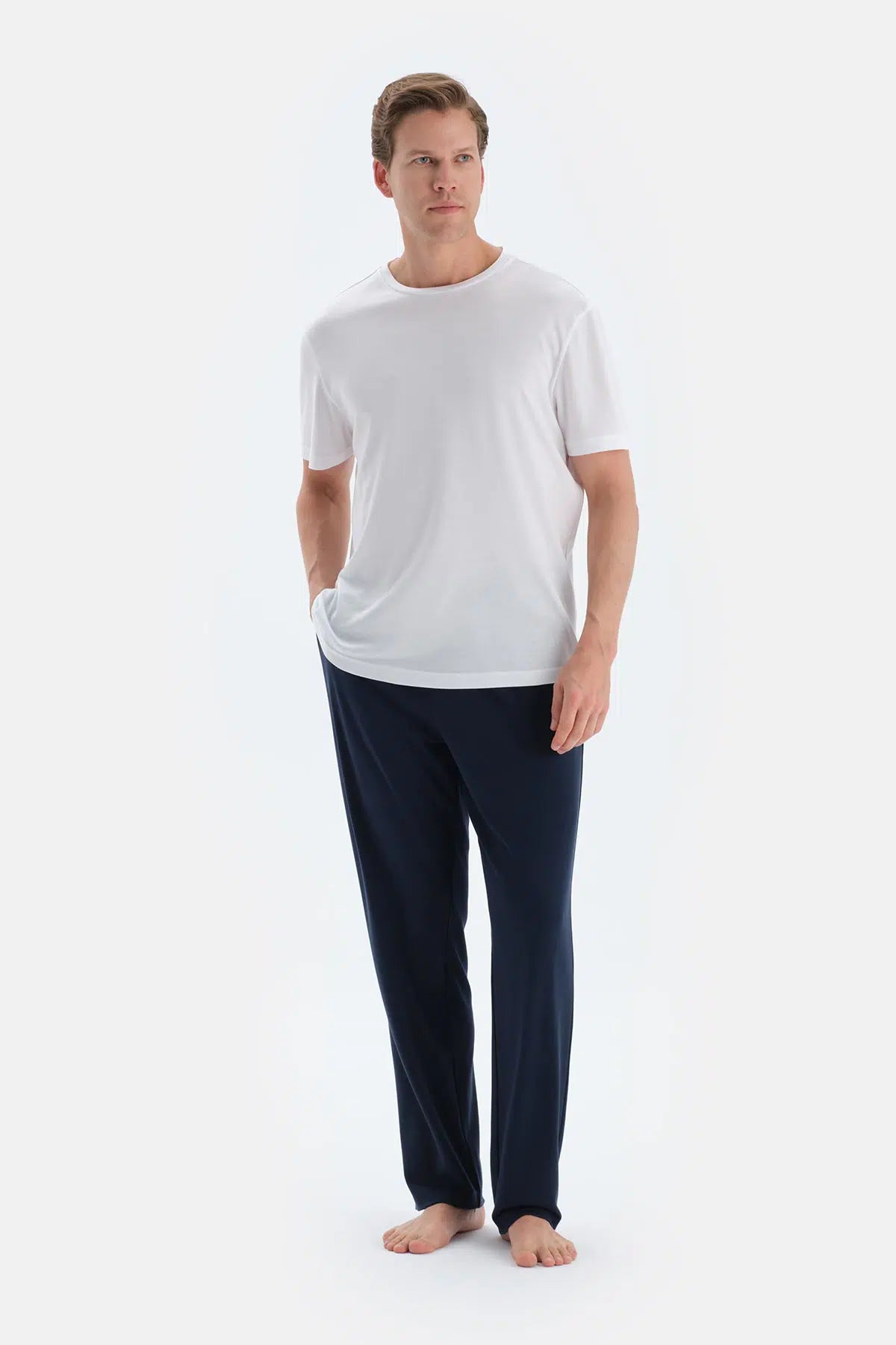 Lacivert Patlet Detaylı Düz Paça Pantolon
