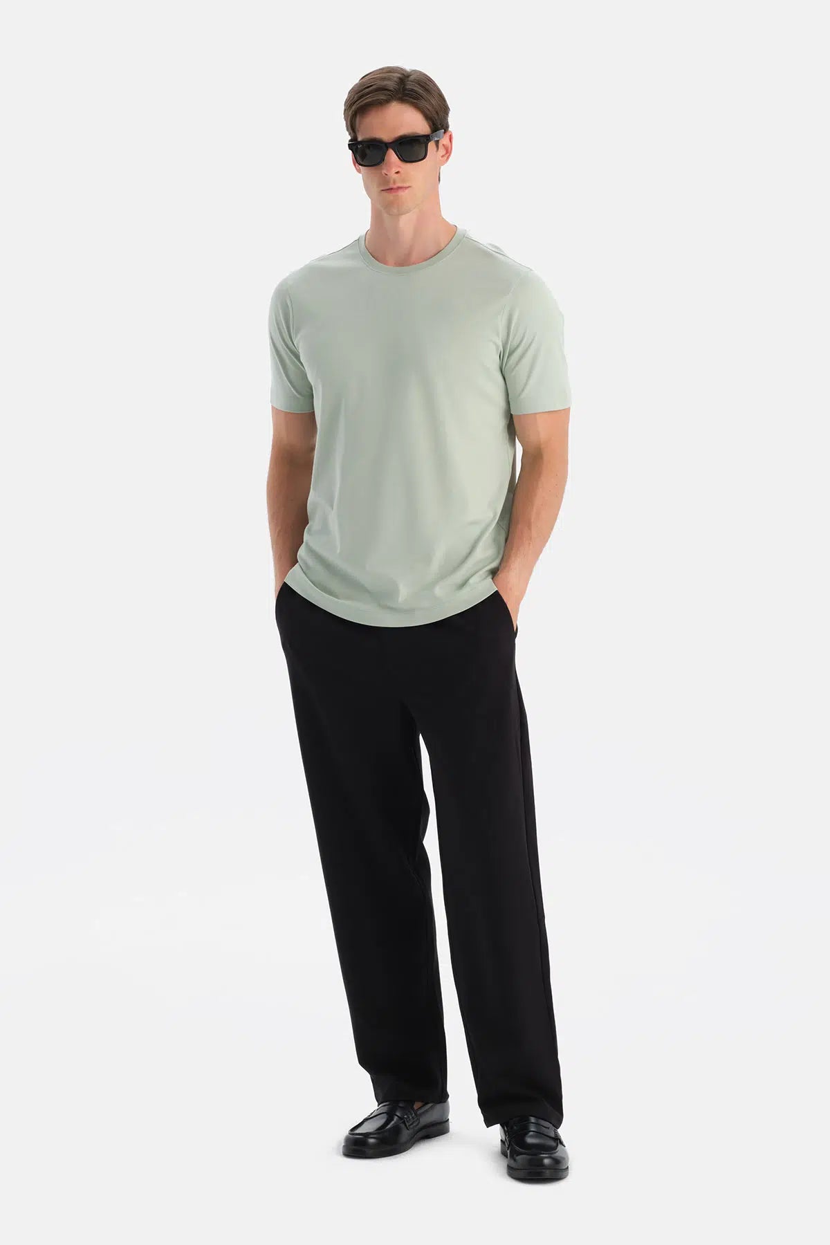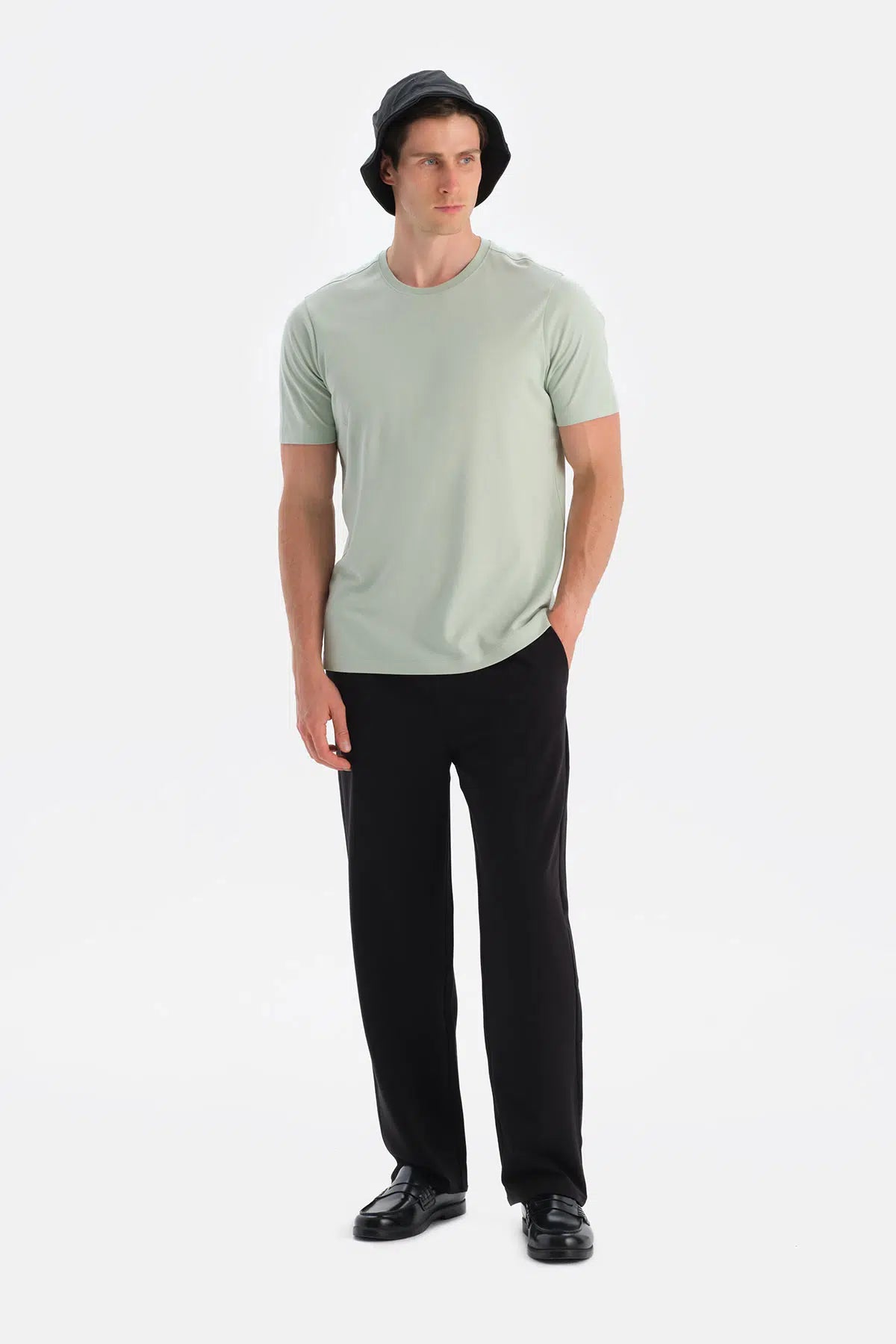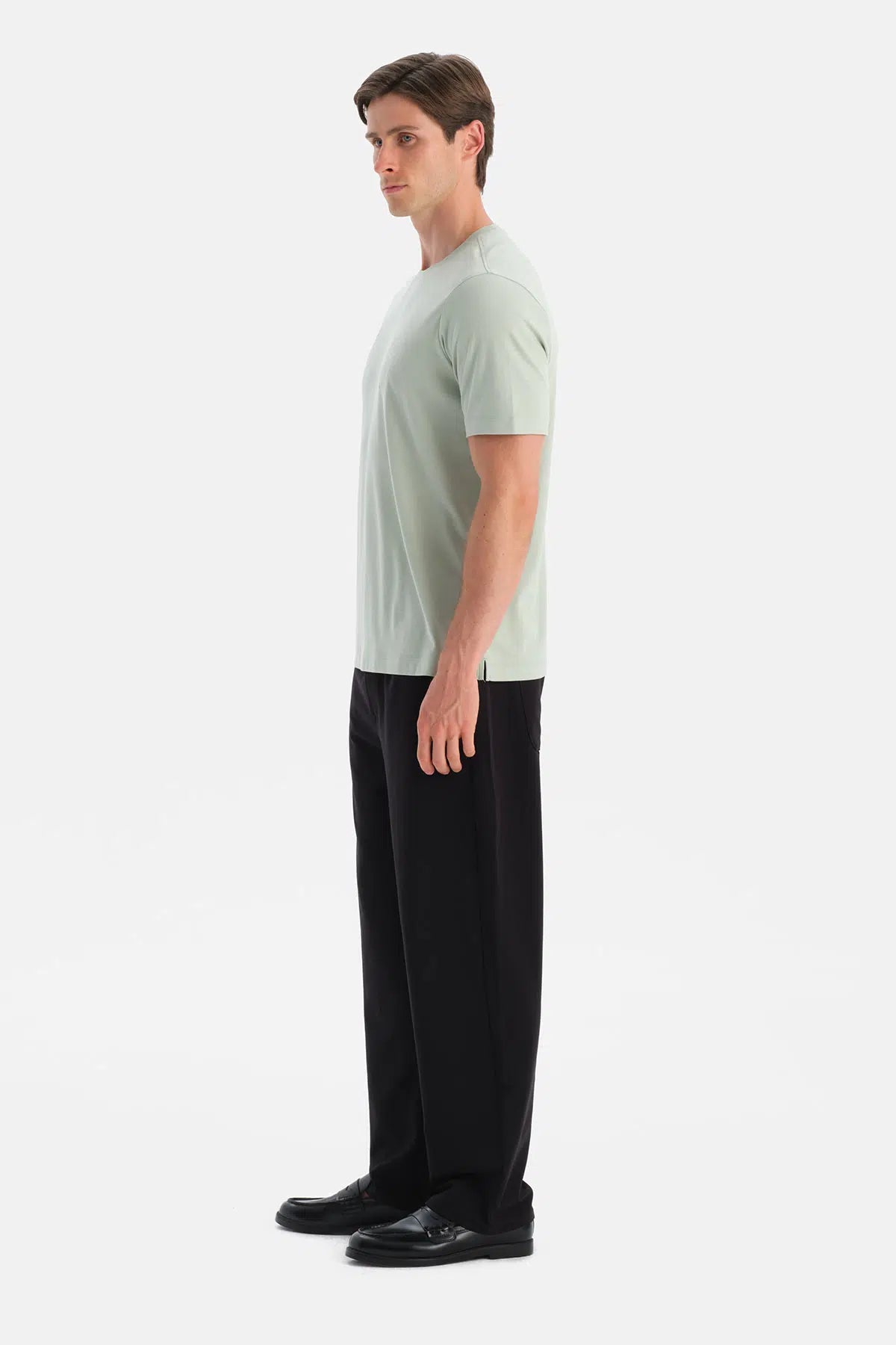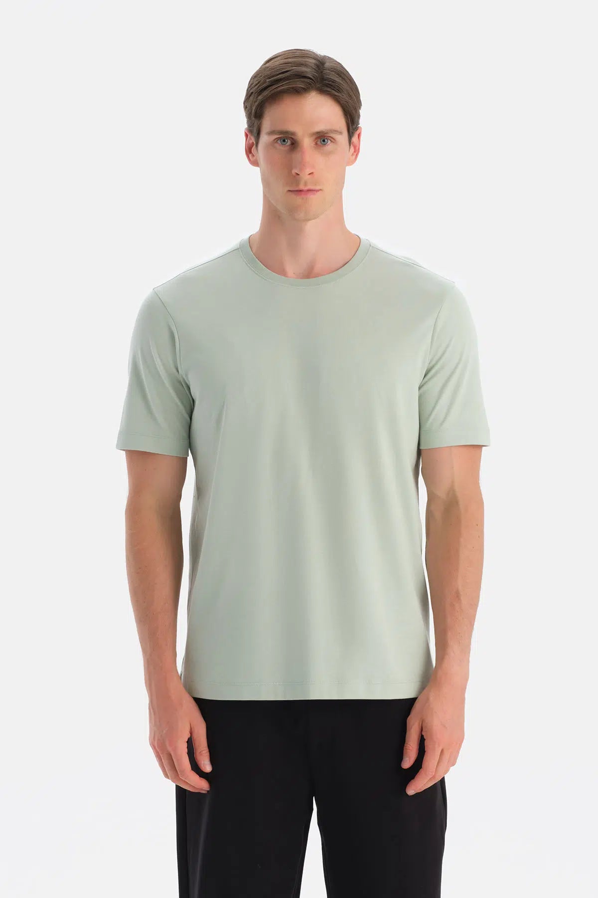 Mint Yeşili Bis Yaka Kısa Kollu Regular Tişört