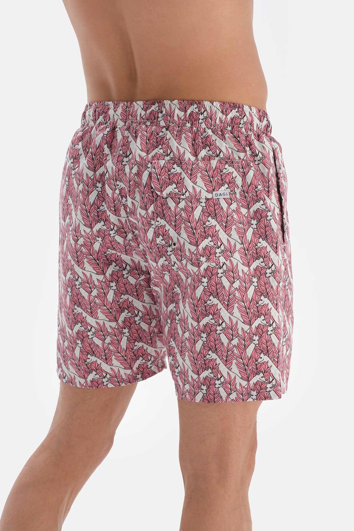 Pembe - Ekru Zürafa Desenli Orta Deniz Şortu