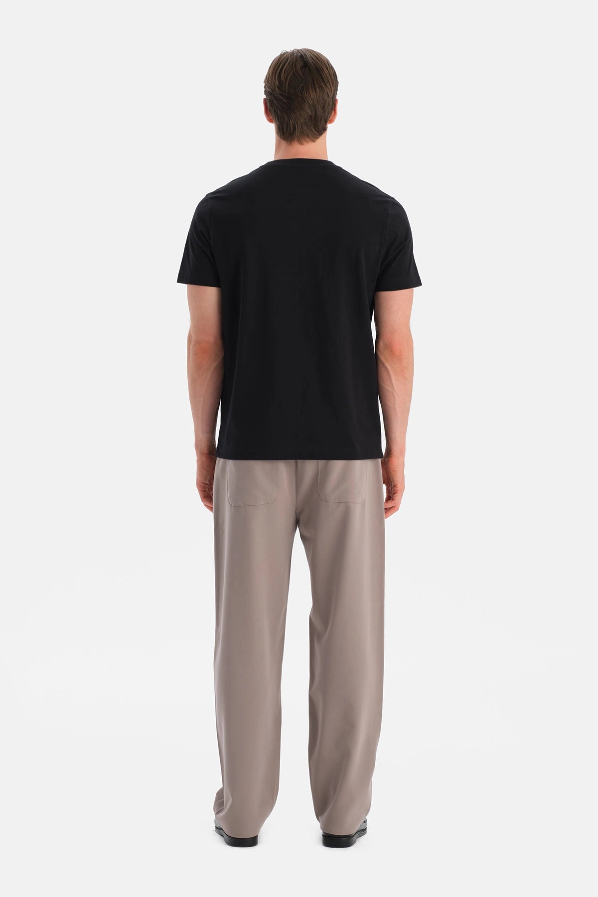 Siyah Yakası Biyeli Kısa Kollu Regular Tişört